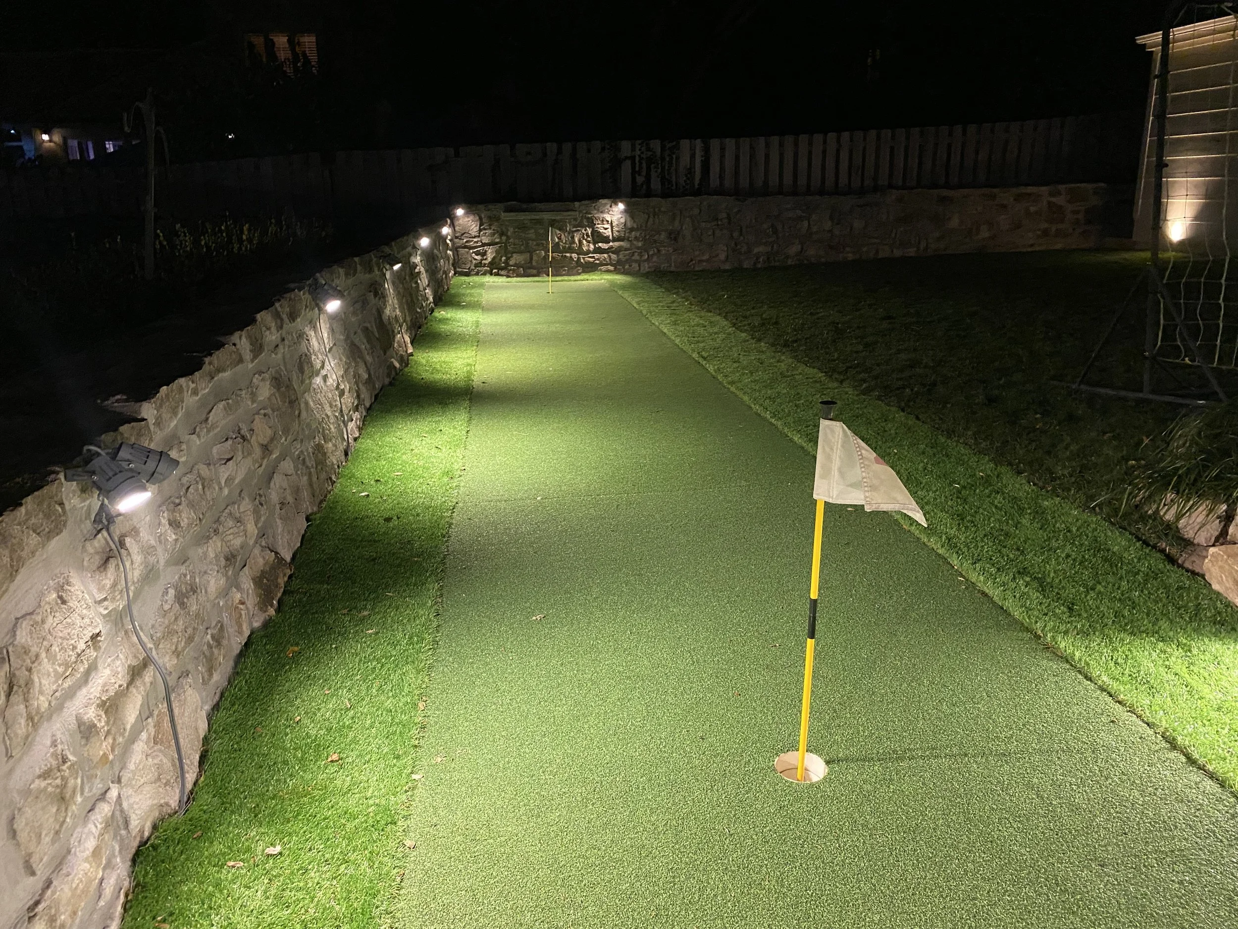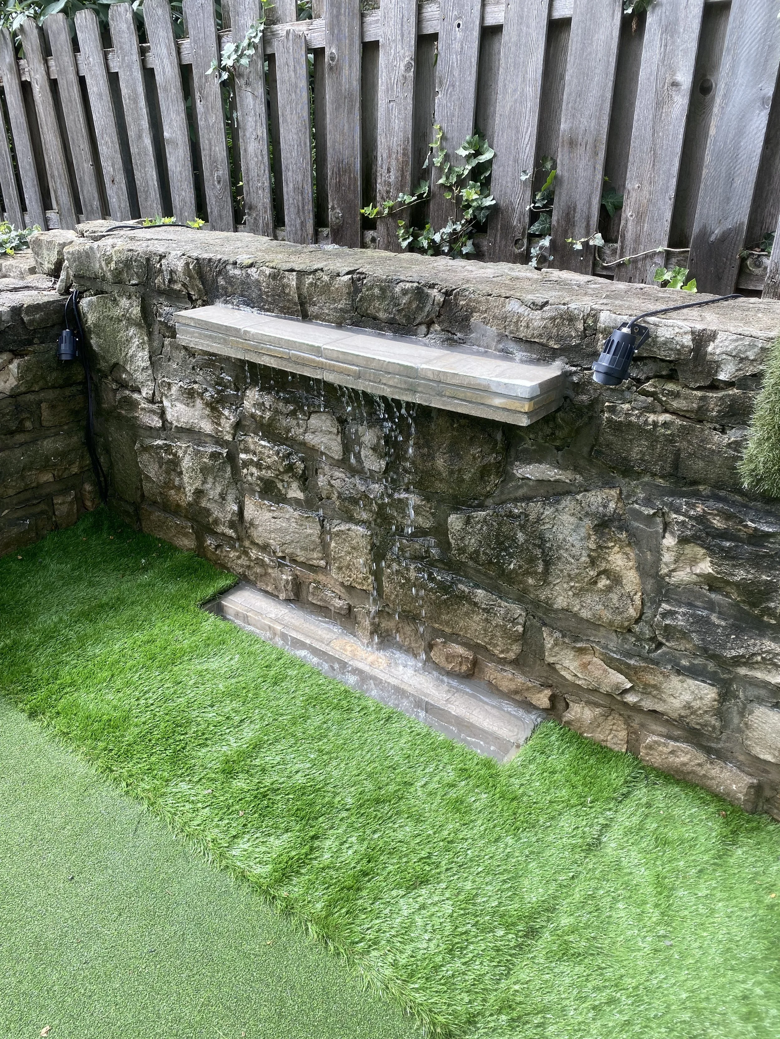Just beyond the North Hole at Chunker’s Hollow, a limestone shelf is cantilevered from the historic stone boundary wall. A steady sheet of water cascades to The Burn below. This 4’ wide and 6” deep recessed stone channel presents a frightful water hazard for even the most swashbuckling competitor.